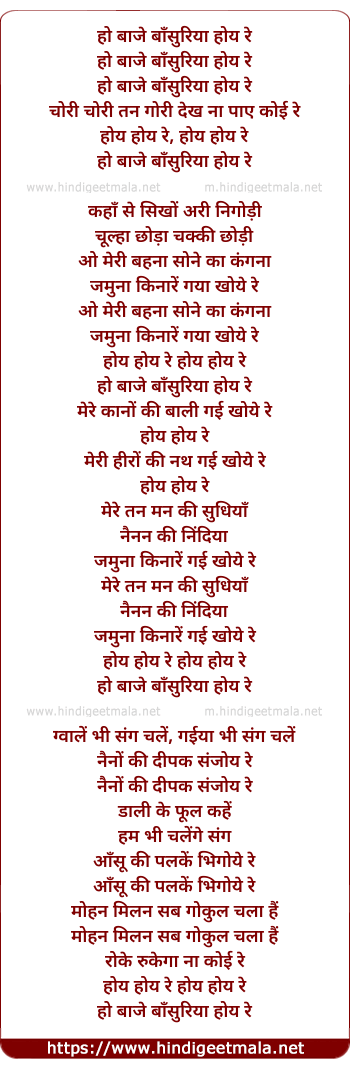 Lyrics of Ho Baaje Bansuriya Hoya Re - हो बाजे बाँसुरिया होय रे