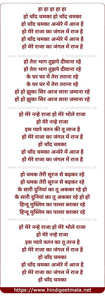 Lyrics of Ho Chand Chamaka Andhere Me Aaj Hai - हो चाँद चमका अन्धेरे में आज है