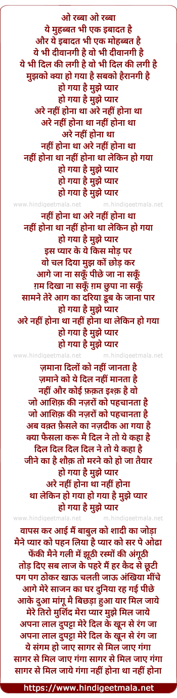Lyrics of Ho Gaya Hai Mujhe Pyaar - हो गया है मुझे प्यार