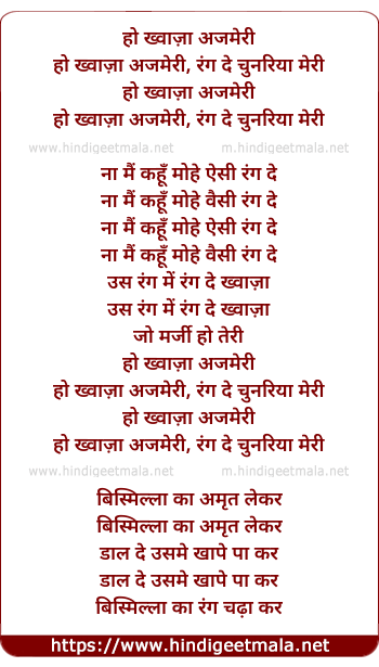 Lyrics of Ho Ho Khwaja Ajameri - हो ख्वाज़ा अजमेरी