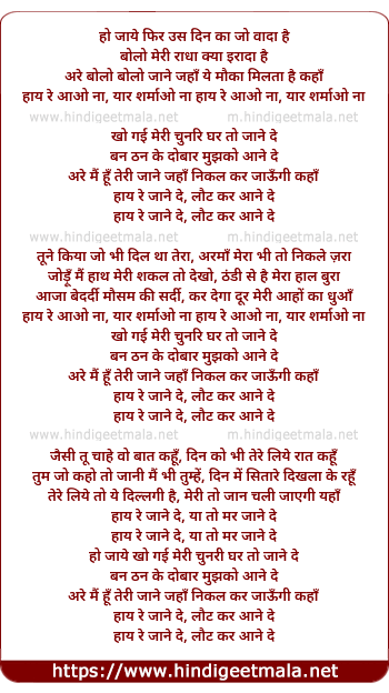 Lyrics of Ho Jaye Phir Us Din Ka Jo Wada Hai - हो जाये फिर उस दिन का जो वादा है