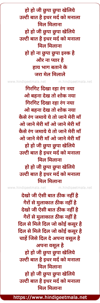 Lyrics of Ho Ji Chhupa Chhupa Kheliye - हो जी छुपा छुपा खेलिये