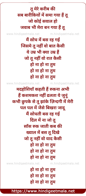 Lyrics of Ho Naa Ho Naa Tum - हो ना हो ना तुम