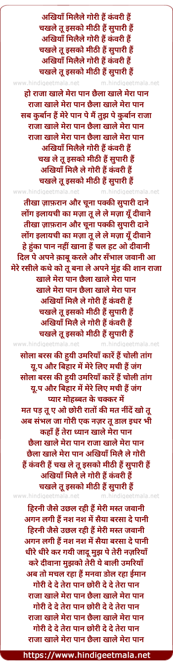 sab kurbaan hai mere paan pe main tujh pe kurbaan raja