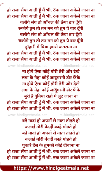 ho raja saiya aati hu main bhi, ruk jana akele jana na