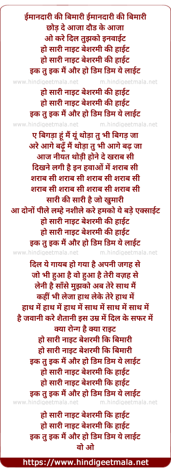 Lyrics of Ho Saari Night Besharmi Ki Height - हो सारी नाइट बेशरमी की हाईट