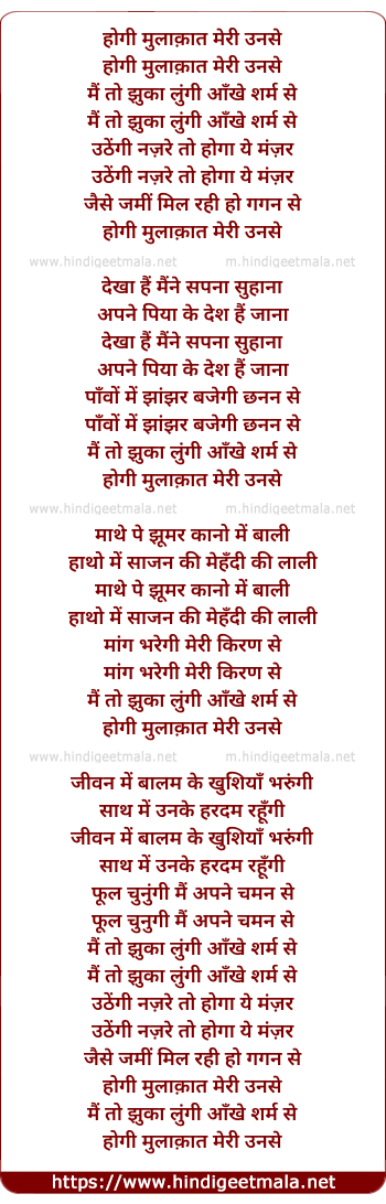 Lyrics of Hogi Mulaqaat - होगी मुलाक़ात मेरी उनसे