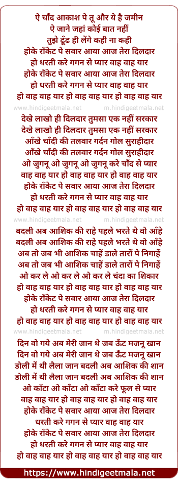 hoke roket pe sawar aya aaj tera dildar
