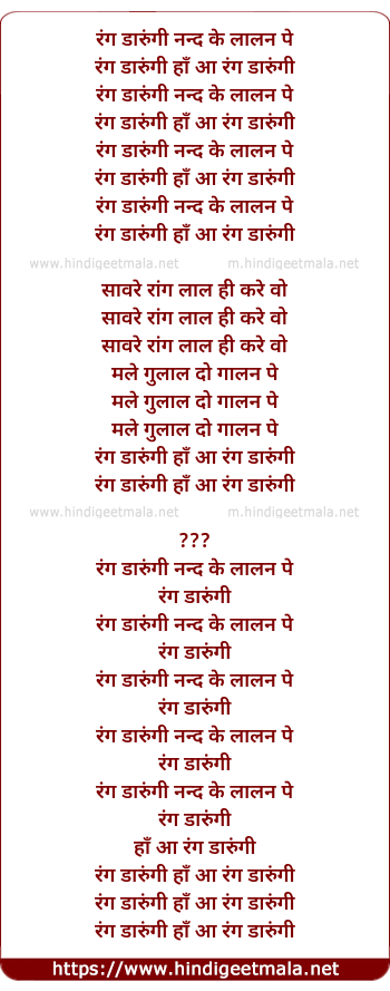 Lyrics of Holi - रंग डारुंगी नन्द के लालन पे