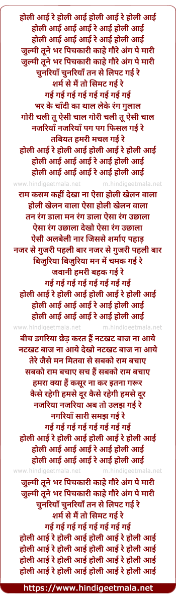 Lyrics of Holi Hai Holi Aayi Re Holi Aayi - होली है होली आई रे होली आई