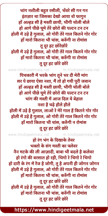 Lyrics of Holi Mein Ude - भांग नशीली बहुत रसीली, भँवरे सी गन गन