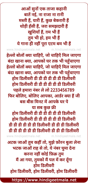 Lyrics of Home Delivery (Title Song) - आओं सुनों एक ताजा कहानी