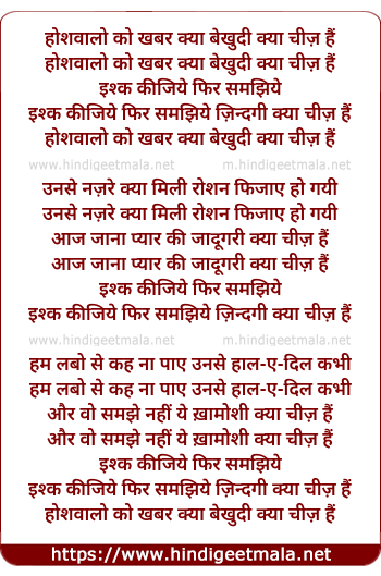 Lyrics of Hoshwalon Ko Khabar Kya - होशवालो को खबर क्या बेखुदी क्या चीज़ हैं