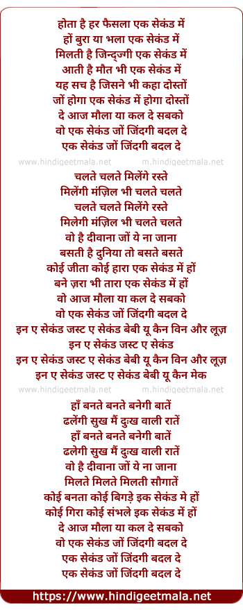 Lyrics of Hota Hai Har Faisala Ek Second Mein - होता है हर फैसला एक सेकंड में