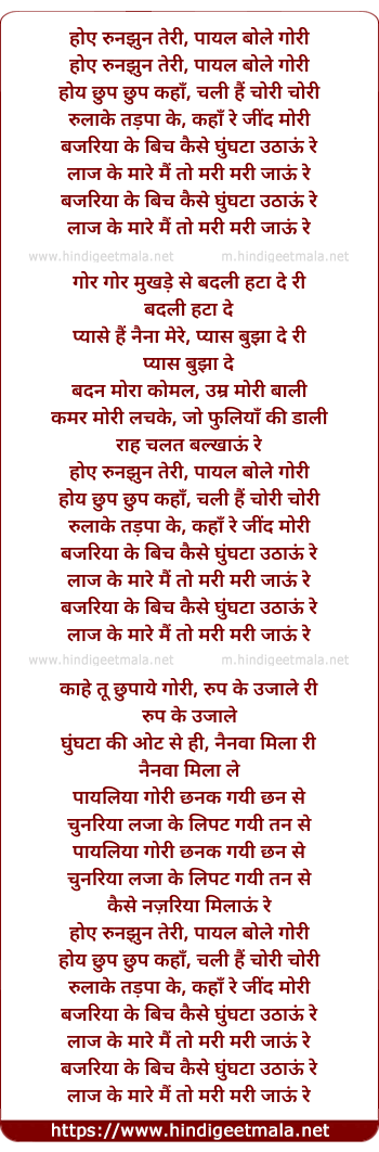 Lyrics of Hoye Run Jhun Teri Payal Bole - होए रुन झुन तेरी पायल बोले