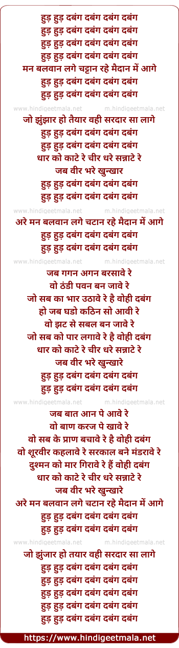 Lyrics of Hud Hud Dabangg Dabangg - हुड हुड दबंग दबंग