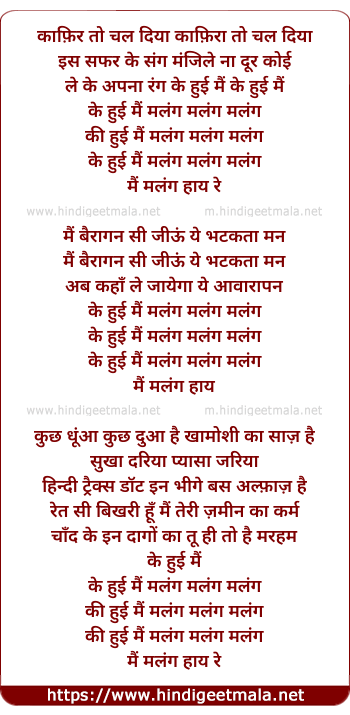 Lyrics of Hui Main Malang - हुई मैं मलंग
