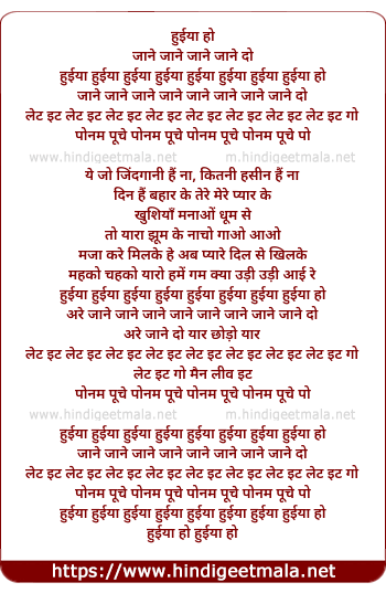 Lyrics of Huiya Huiya Huiya Ho Jane Do - हुईया हुईया हुईया हो जाने दो