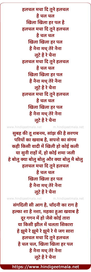 Lyrics of Hulchul Machadi Tune Hulchul - हलचल मचा दि तूने हलचल