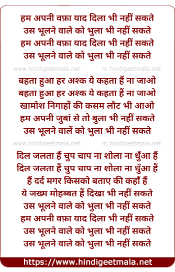 Lyrics of Hum Apni Wafa Yaad Dila Bhi Nahin Sakte - हम अपनी वफ़ा याद दिला भी नहीं सकते
