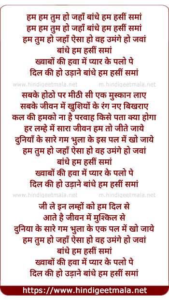 hum hum tum ho jaha bandhe hum hasi sama
