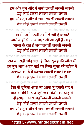 Lyrics of Hum Aur Tum Aur Ye Samaa Lovely Lovely - हम और तुम और ये समां लवली लवली