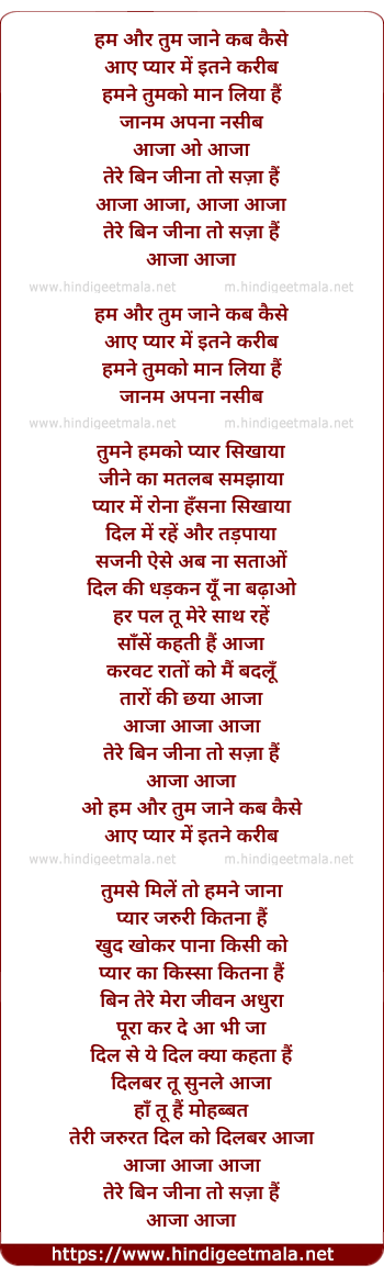 Lyrics of Hum Aur Tum (Durga) - हम और तुम जाने कब कैसे