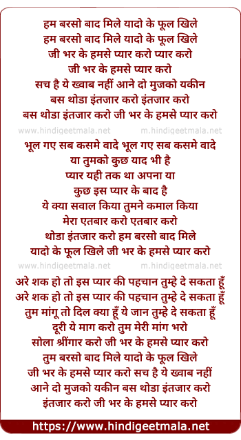 Lyrics of Hum Barson Baad Mile - हम बरसो बाद मिले