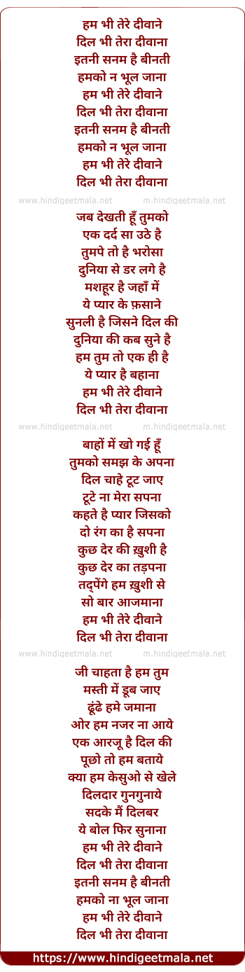 Lyrics of Hum Bhi Tere Diwane Dil Bhi Tera Diwana - हम भी तेरे दीवाने दिल भी तेरा दीवाना
