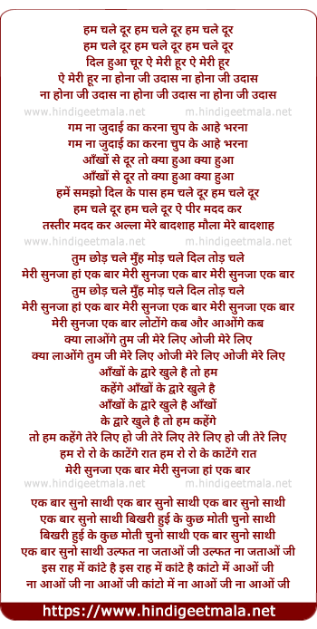 Lyrics of Hum Chale Dur Dil Hua Chur - हम चले दूर दिल हुआ चूर