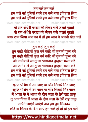 Lyrics of Hum Chale Nayi Duniya Rachne - हम चले नयी दुनिया रचने