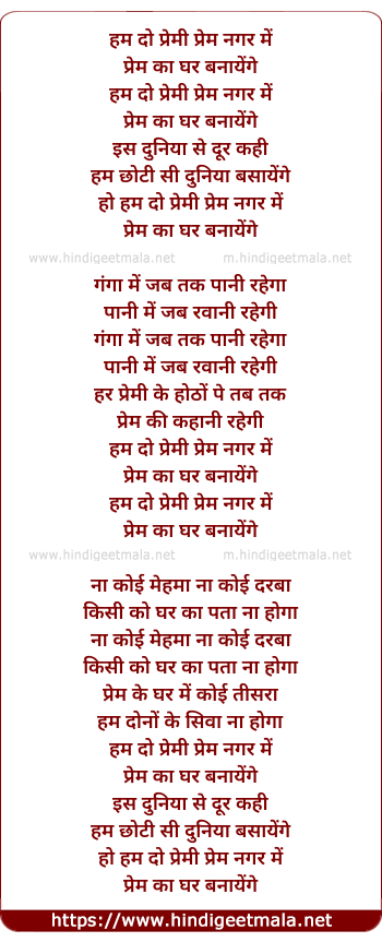 Lyrics of Hum Do Premi - हम दो प्रेमी
