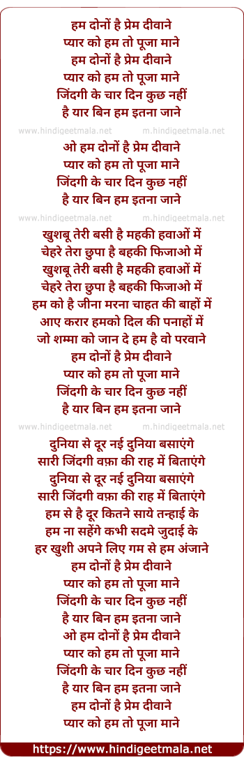 Lyrics of Hum Dono Hai Prem Diwane - हम दोनों है प्रेम दीवाने