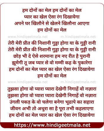 Lyrics of Hum Dono Ka Mel - हम दोनों का मेल