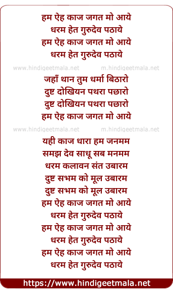 Lyrics of Hum Eh Kaaj Jagat Mo Aaye - हम ऐह काज जगत मो आये