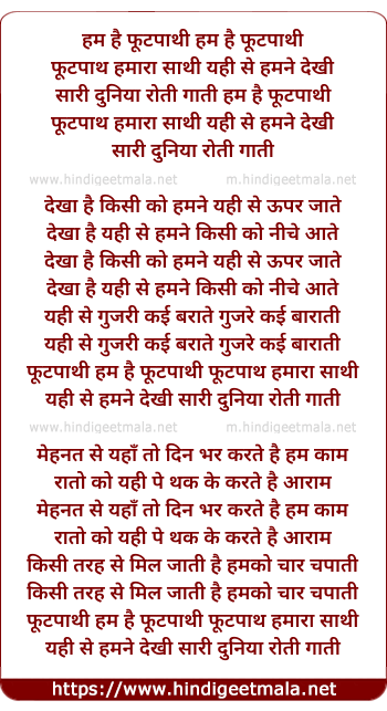 Lyrics of Hum Hai Footpathi Footpath Humara Sathi - हम है फूटपाथी फूटपाथ हमारा साथी