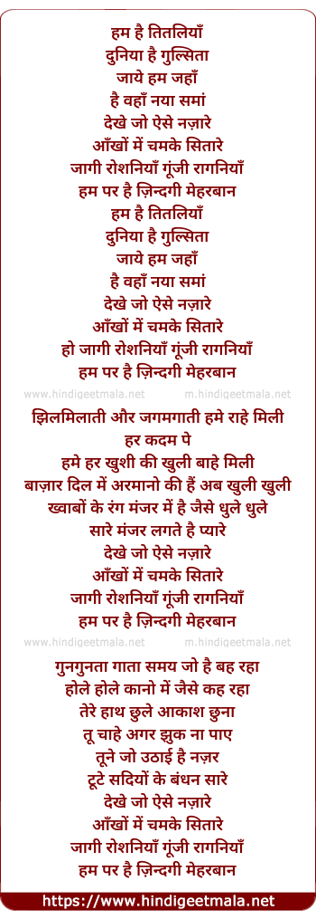 Lyrics of Hum Hai Titliya Duniya Hai Gulsita - हम है तितलियाँ दुनिया है गुलसिता