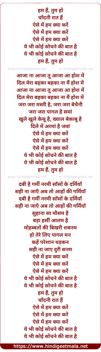 Lyrics of Hum Hai Tum Ho - हम हैं तुम हो