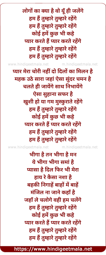 Lyrics of Hum Hai Tumhare Tumhare Rahenge (Female) - हम हैं तुम्हारे तुम्हारे रहेंगे
