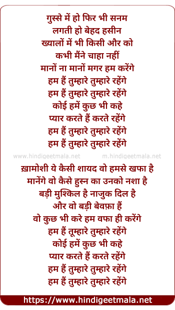 Lyrics of Hum Hai Tumhare Tumhare Rahenge (Male) - गुस्से में हो फिर भी सनम