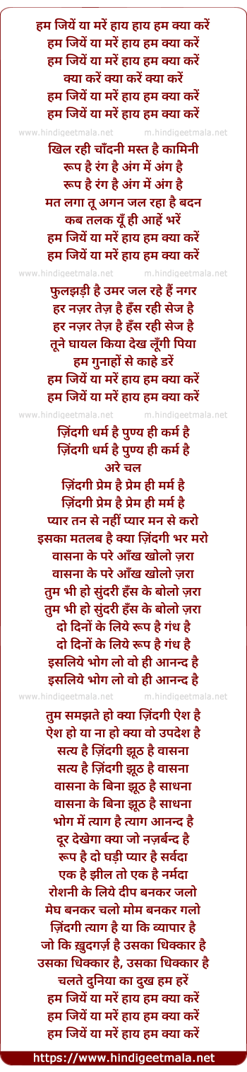 Lyrics of Hum Jiye Ya Mare - हम जियें या मरें