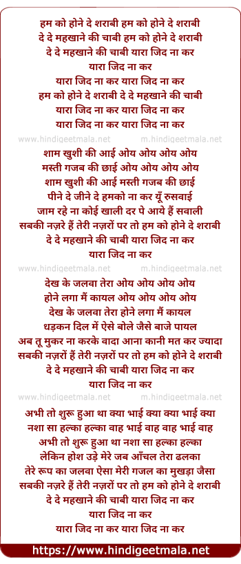 Lyrics of Hum Ko Hone Do Sharabi - हम को होने दे शराबी