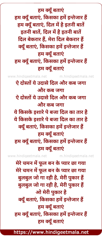 Lyrics of Hum Kyu Bataye - हम क्यूँ बताएं