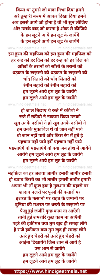 Lyrics of Hum Lutne Aaye Hai Hum Loot Ke Jayenge - हम लुटने आये है हम लुट के जायेंगे