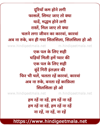 Poetic Translation - Lyrics of Hum Rahein Na Rahein - दूरियाँ कम होने लगी
