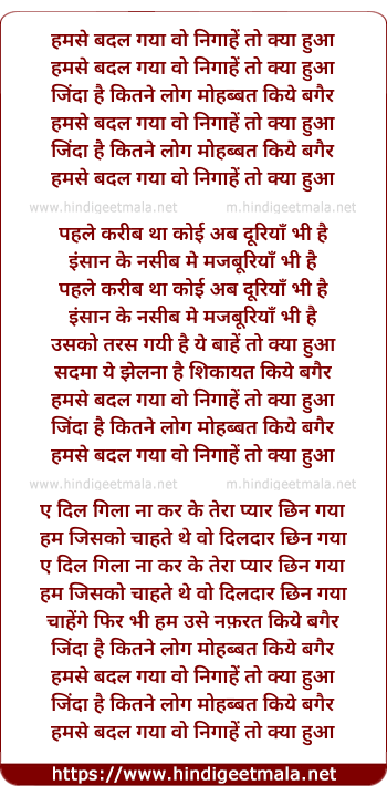 Lyrics of Hum Se Badal Gaya Wo Nigahe To Kya Hua - हमसे बदल गया वो निगाहें तो क्या हुआ