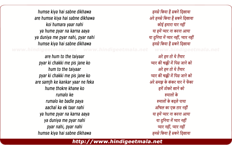 Lyrics of Hum Se Kiya Hai Sabne Dikhawa (Part-2) - हमसे किया है सबने दिखावा