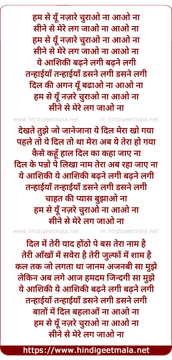 Lyrics of Hum Se Yu Nazre Churao Na - हम से यूँ नज़ारे चुराओ ना