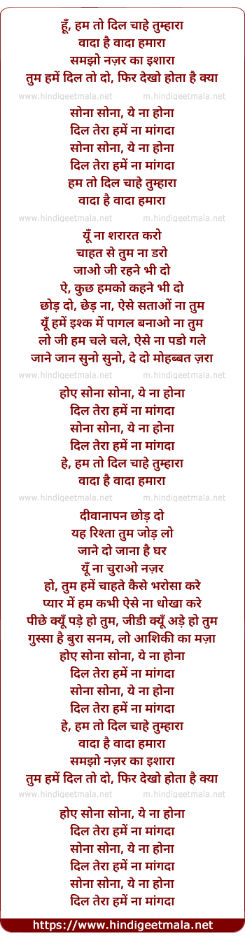 Lyrics of Hum To Dil Chahe Tumhara - हम तो दिल चाहे तुम्हारा