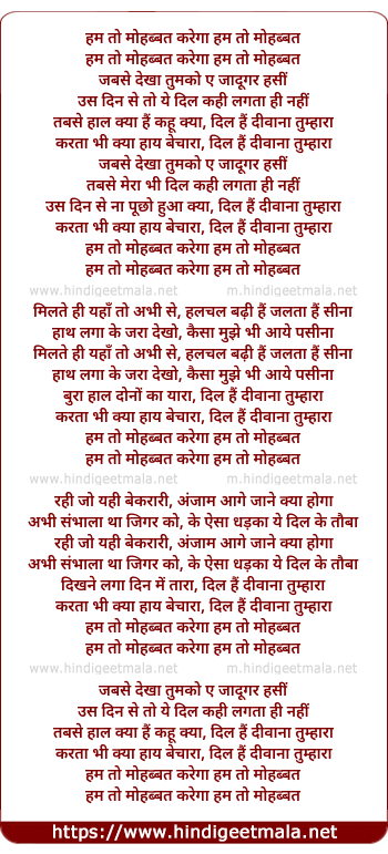 Lyrics of Hum To Mohabbat Karega - हम तो मोहब्बत करेगा